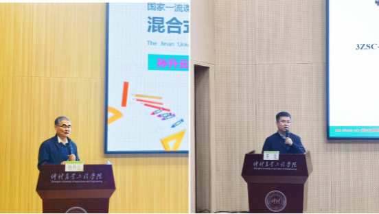 专任教师教学科研能力专题培训于12月7日和8日上午进行。12月7日上午,暨南大学孙升云教授作《国家一流课程建设与混合式教学设计与实施》专题报告。孙升云从政策入手,为老师们解读了国家对于线上、线下以及混合式一流课程建设的要求。他表示,一流课程建设要注重以教为中心向以学为中心转变,以提升教学效果为目的,运用适当的数字化教学工具。实施打破传统课堂“满堂灌”和沉默状态的方式方法,训练学生问题解决能力和审辩式思维能力。他指出,“教学有法,教无定法”,线上线下混合式教学,不应该套用统一的模式,要因课制宜,因材施教,发力适度,瞄准痛点。华南农业大学研究员齐龙作《青年教师如何做好科研》专题报告。他以亲身经历,向大家讲述了自己在“水稻智能机械除草技术与装备”方面的科研历程,从寻找方向到凝练成果,从论文发表到国家自然科学基金重点联合基金,他向老师们展示了一路走来的所思、所想、所获以及如何胸怀国之大者走好科研之路,对青年教师的成长有较强的指导意义。