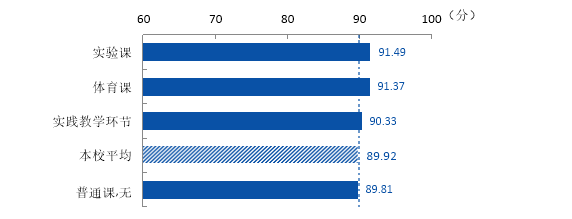 2.实验课:问卷总体得分为91.49分,样本数为3592,具体指标与得分如表3所示。